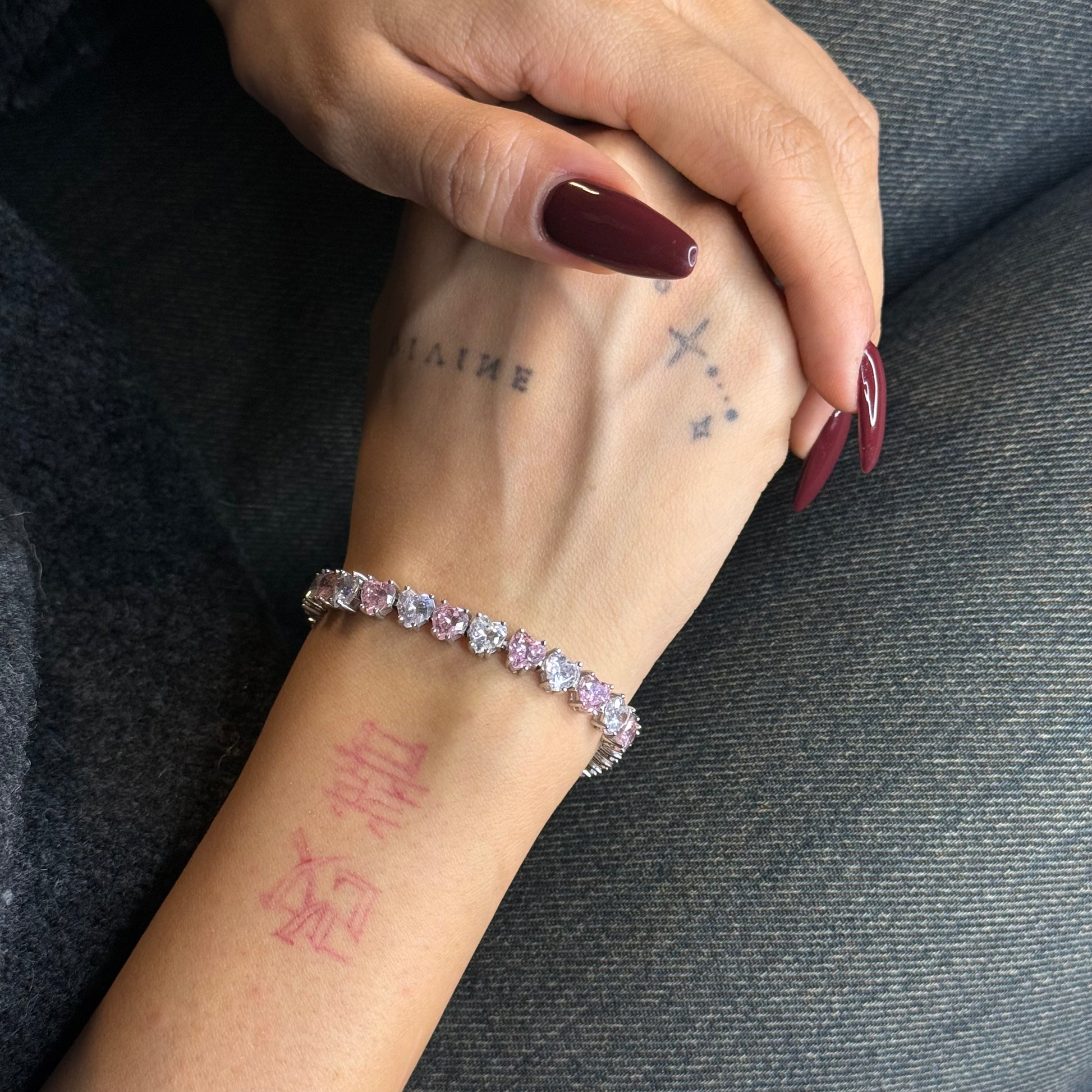 - Bir pembe bir beyaz kalp bileklik